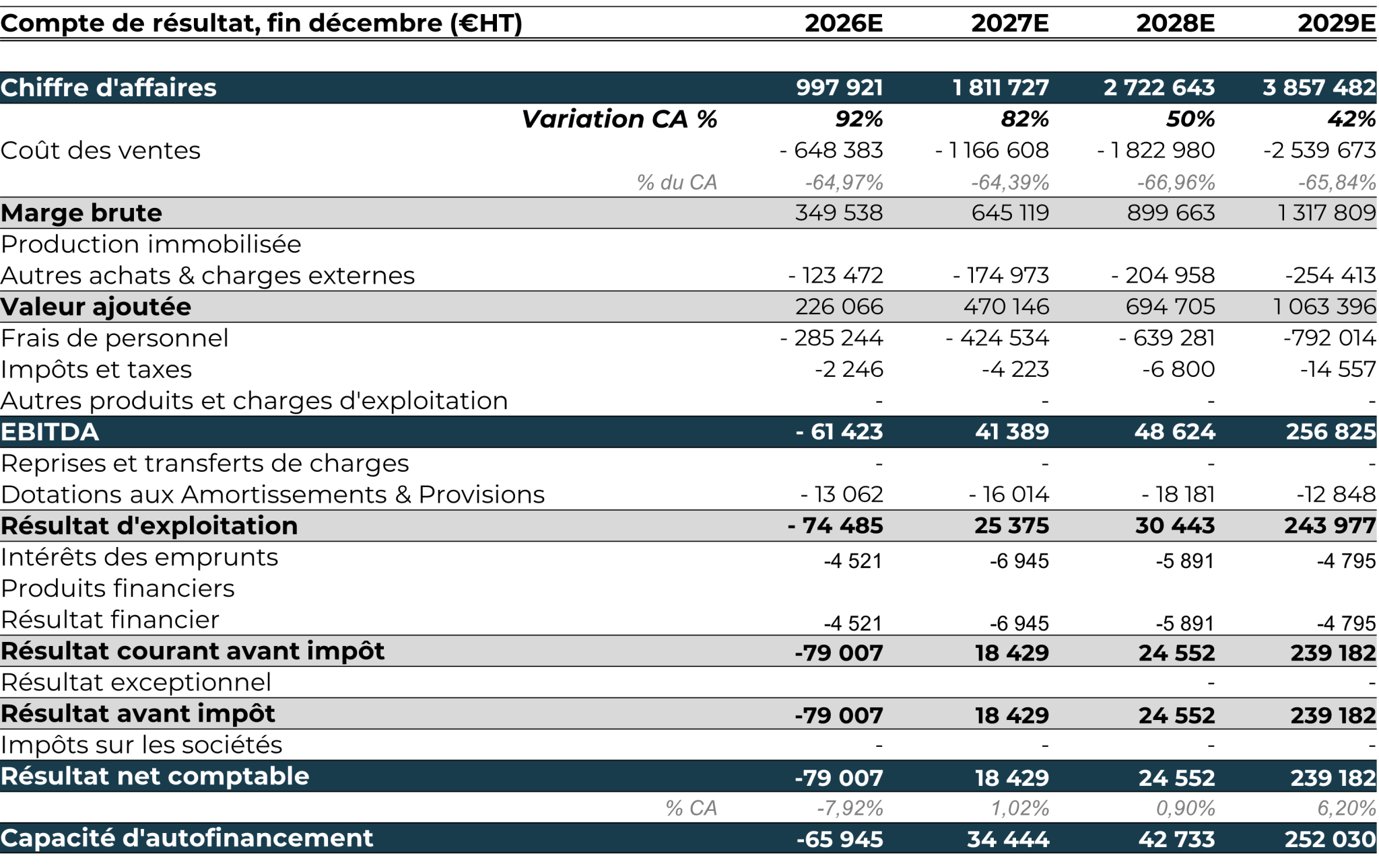 Table de capitalisation prévisionnelle après opération :